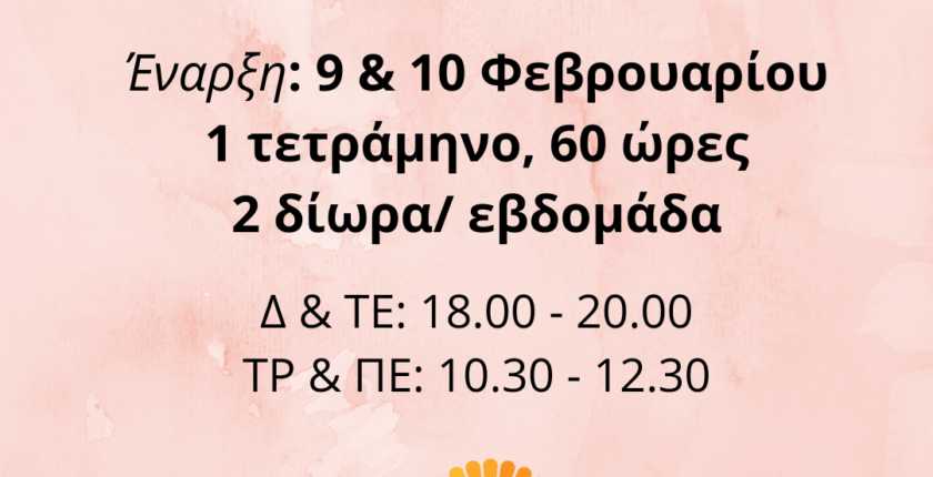 - Τρίτη & Πέμπτη 10.30 – 12.30