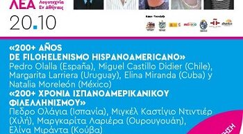 XIII FESTIVAL LEA Τετάρτη 20 Οκτωβρίου – Στις 19.00. ΣΥΖΗΤΗΣΗ | «200+ χρόνια Ισπανοαμερικανικού φιλελληνισμού» Δια χειρός Πεδρο Ολάγια, συγγραφέα και πρέσβη του Ελληνισμού, και με την τηλεματική παρέμβαση των πρέσβεων του Ελληνισμού, Μιγκέλ Καστίγιο Ντιντιέρ (Χιλή), Μαργκαρίτα Λαριέρα (Ουρουγουάη), Ελίνα Μιράντα (Κούβα) και Νατάλια Μορελεόν (Μεξικό), το Φεστιβάλ ΛΕΑ μας προσφέρει την ευκαιρία, σε αυτή […]