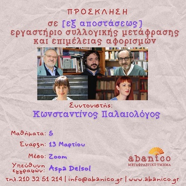 ΕΡΓΑΣΤΗΡΙΟ ΣΥΛΛΟΓΙΚΗΣ ΜΕΤΑΦΡΑΣΗΣ ΚΑΙ ΕΠΙΜΕΛΕΙΑΣ ΑΦΟΡΙΣΜΩΝ
